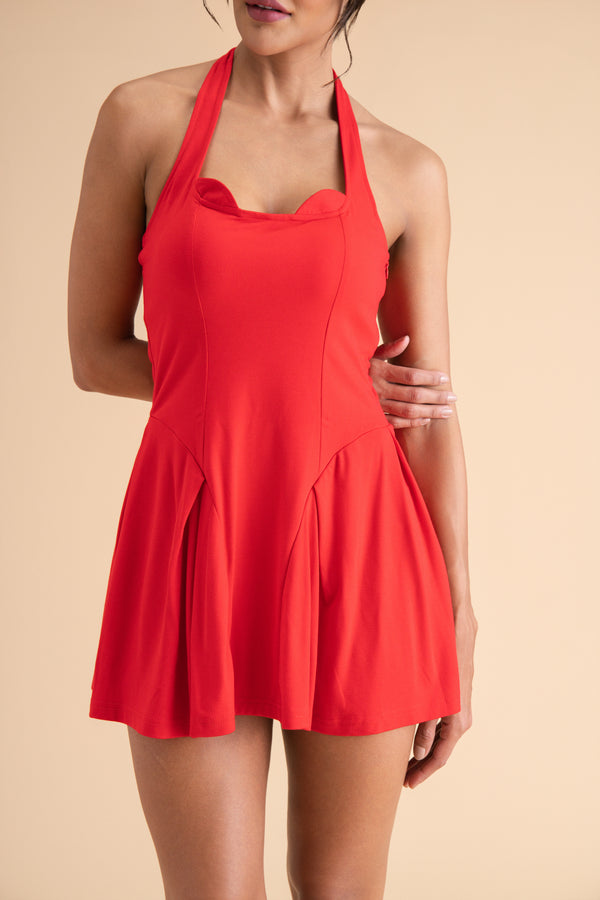 Ruched Red Mini Dress