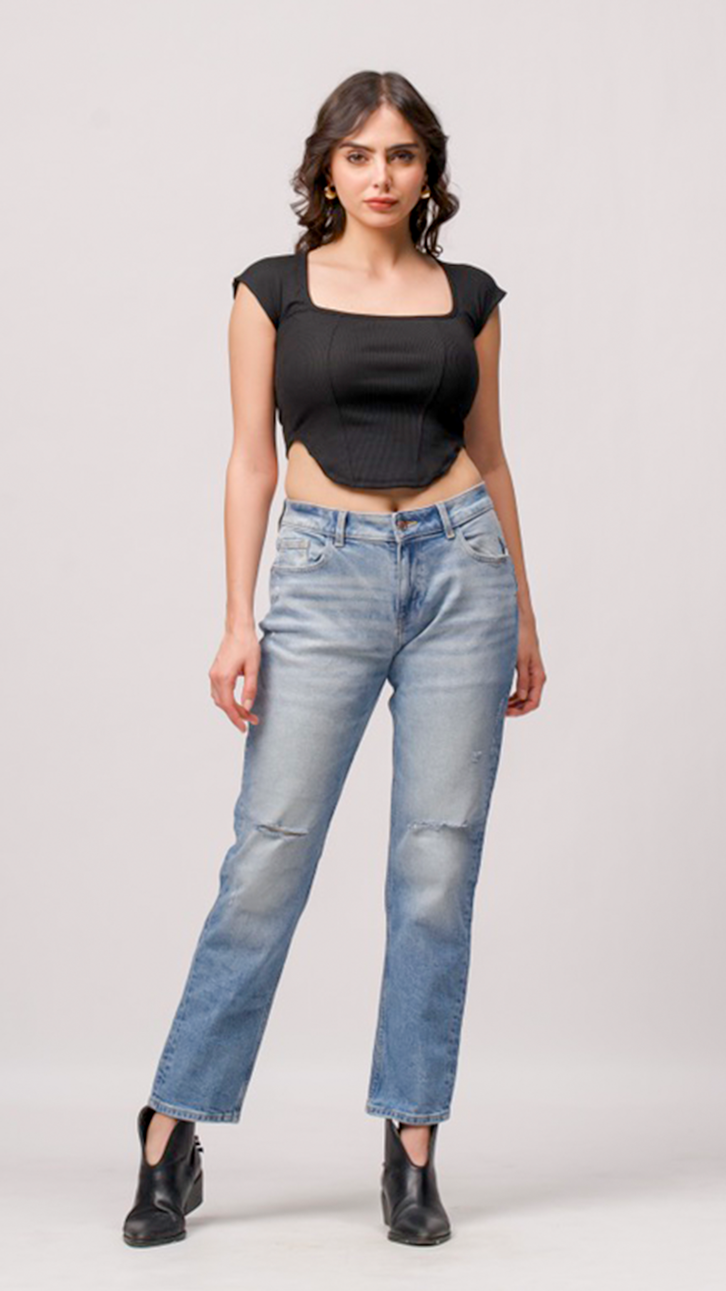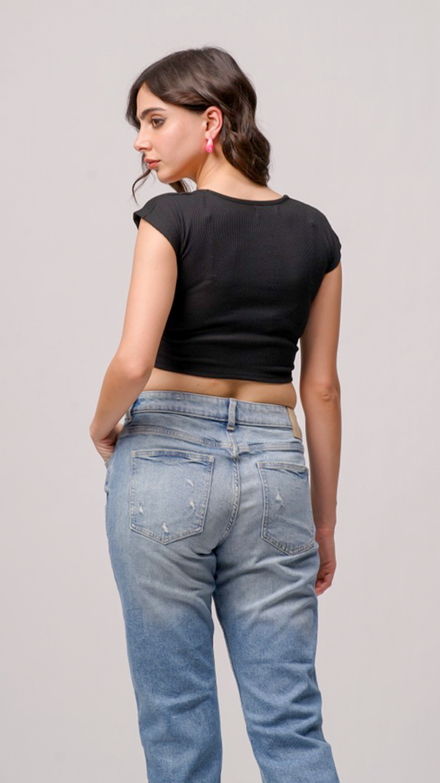 Elevate your casual wardrobe with this chic black top! Made from pure cotton, it features a sophisticated square neckline that flatters your collarbones. The unique asymmetric hemline adds a modern twist, making it a standout piece. Perfect for pairing with low waisted bottoms for an effortlessly stylish look.