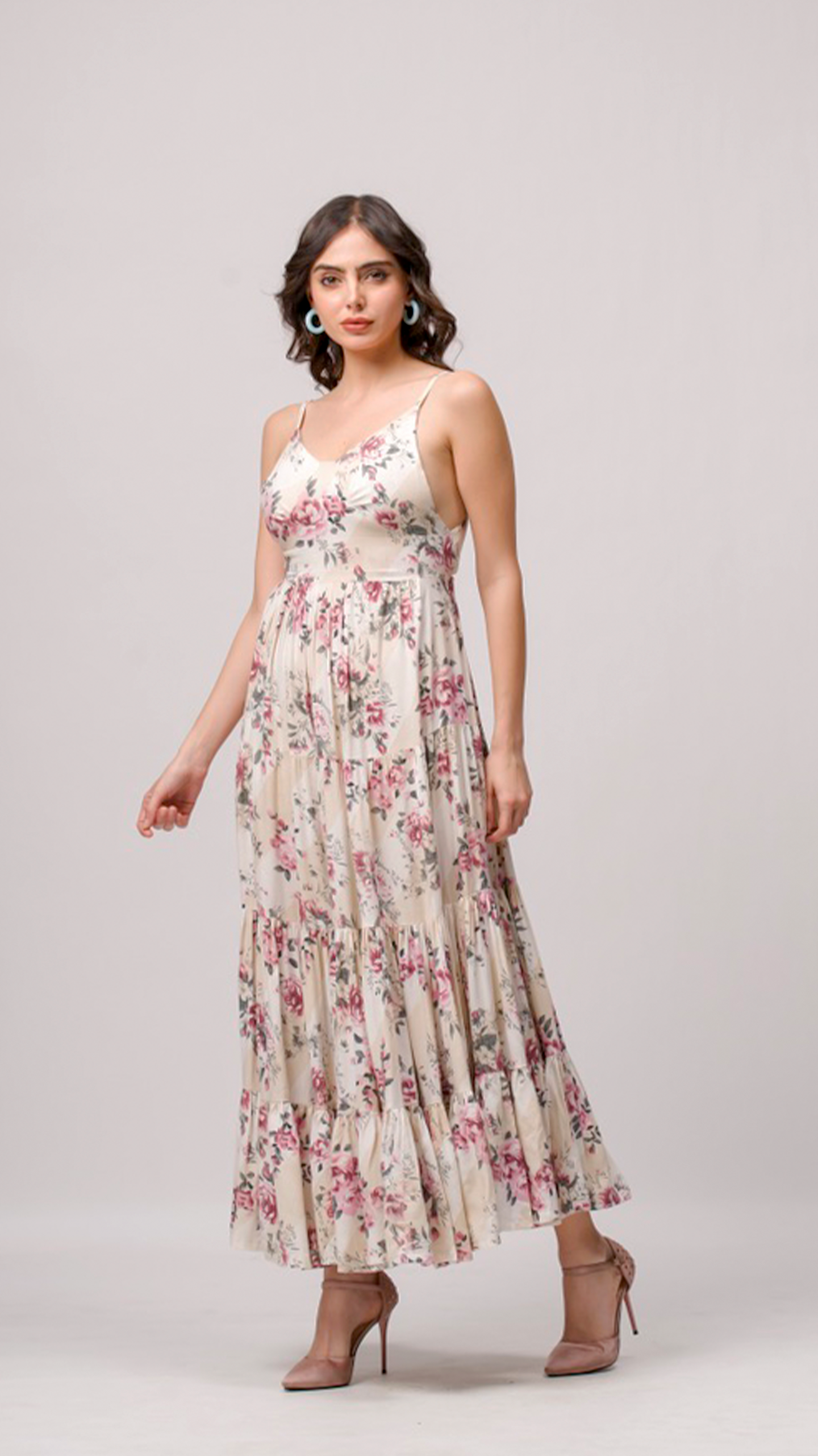 Embrace breezy elegance with this printed viscose maxi dress! Featuring a tiered skirt, adjustable spaghetti straps, and a charming open-back design with a bow detail, it’s perfect for casual summer outings. The lightweight fabric ensures comfort, while the flowy silhouette adds grace.