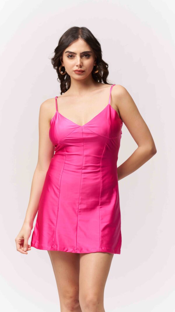 Get ready to shine in this lovely pink dress that’s all about those party vibes. Its sleek satin look and fitted design make it super flattering. Made from a blend of nylon, satin, and lycra, it’s comfy and stretchy too. The thin straps and minimalist style give it a timeless elegance, perfect for a night out. Add some sparkly accessories and heels, and you’ll be turning heads all night!